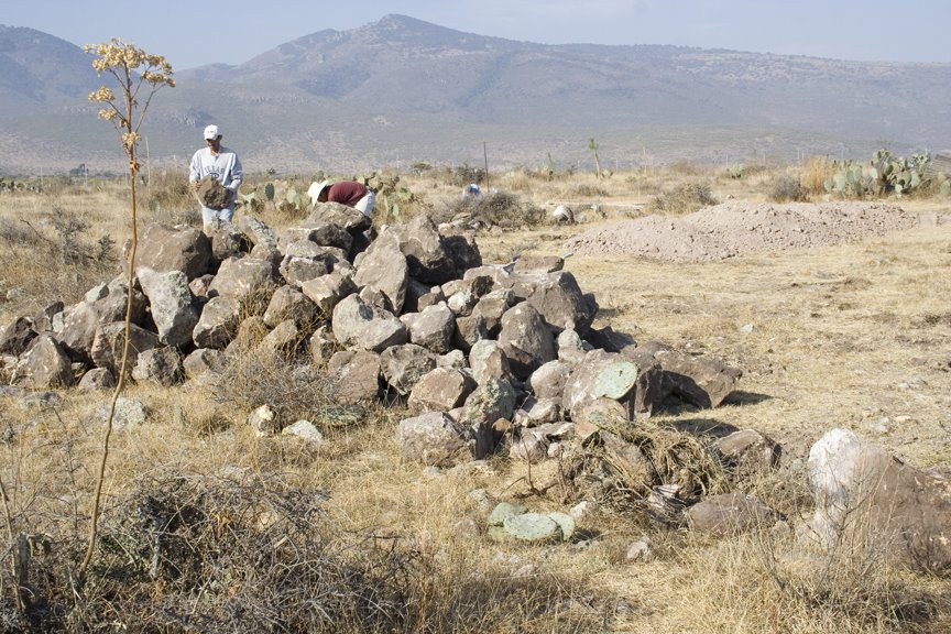 Also at the site we found an assistant architech wearing a giant floppy Mexican hat that looked like one of those creations tourists buy at the airport in Acapulco or Puerto Vallarta on the way home, but without the fancy sequins and decorations. He kept one hand on to the hat to keep it from blowing away.