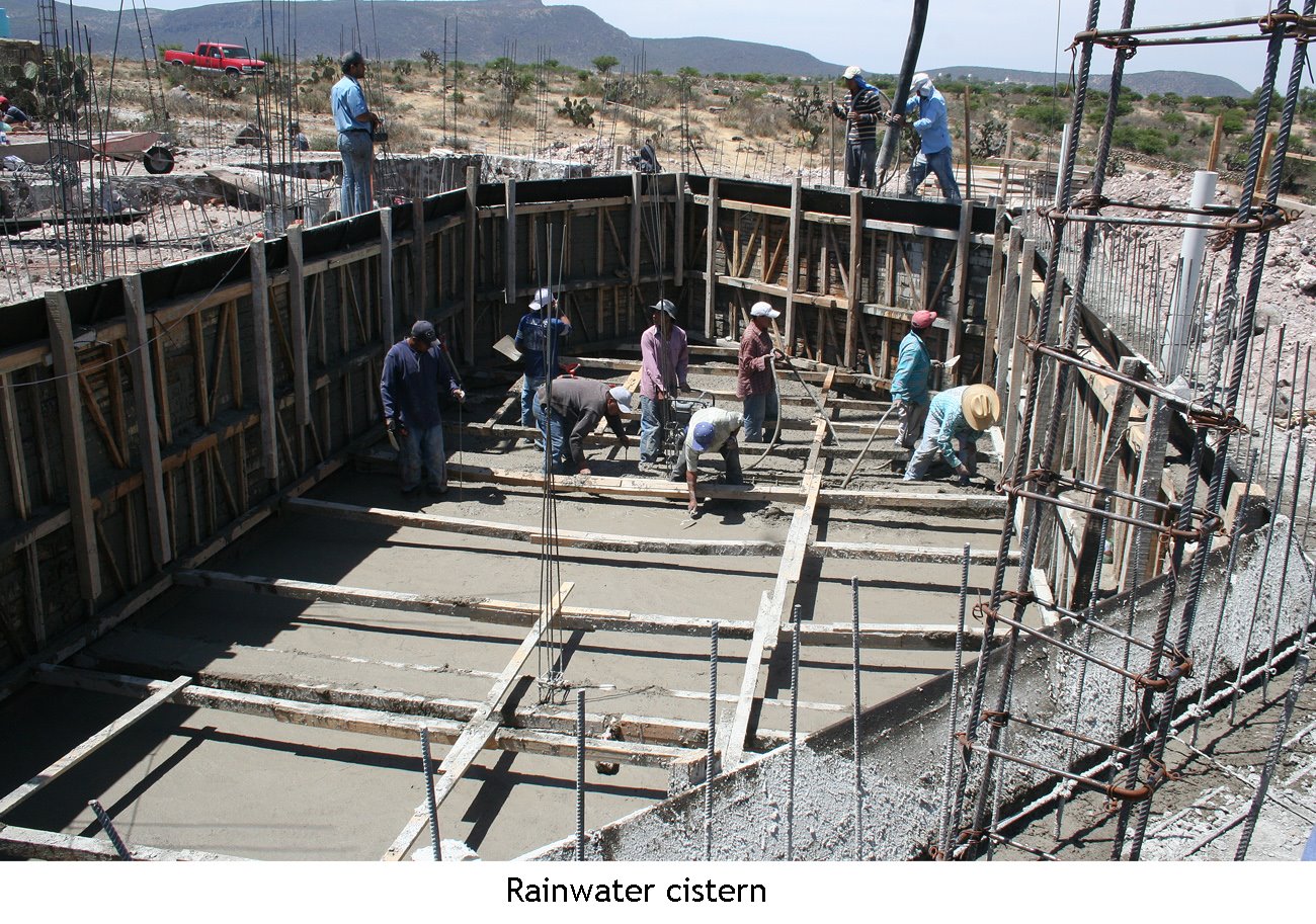 As I have mentioned in previous blogs, we envisioned a cistern that would hold approximately 130,000 liters, or 34,000 gallons of rainwater. According to other local folks who have rain collection systems, that amount should carry us through an entire year without too many water conservation acrobatics. Our architect, who has quite a bit of experience building sustainable homes says we have enough roof space to collect 188,000 liters of rainwater in a normal year. Because of global warming (or whatever, don’t want to start an argument about that with any Republican relatives and acquaintances) rainfall in San Miguel has been unusually heavy during the past two years.