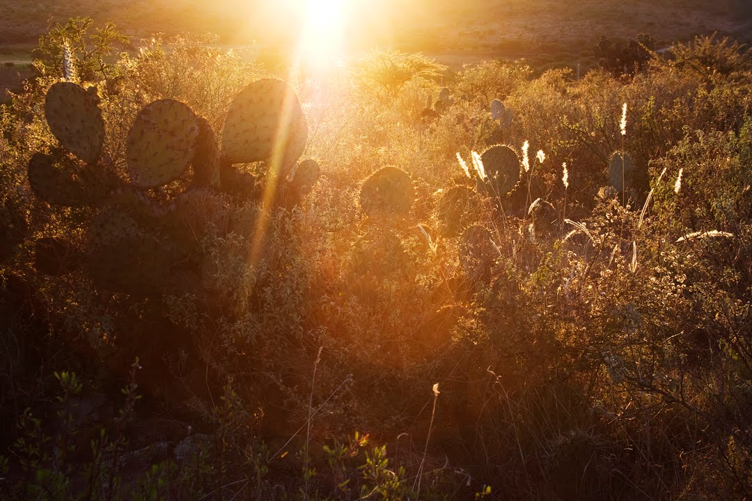 Over a period of no more than an hour the scene changed hues from starry black, to grayish-blue and then increasingly vibrant shades of orange. An inaudible alarm clock rousted the birds which started chirping all at once, with a few braying donkeys joining in. The customary shades of grayish-green and burnt-brown of the cacti and the grasses, now backlit by the rising sun, seemed to be on fire.