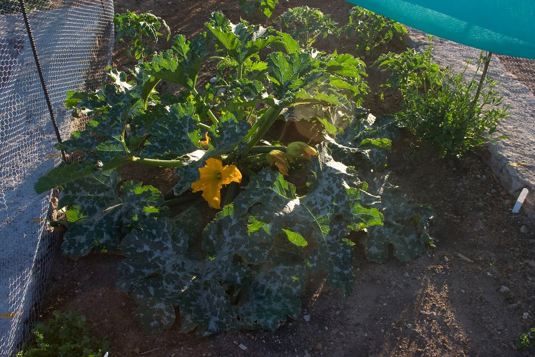A zucchini glut looms. The one plant has fruits growing so fast that Stew asked me if I had fed it Viagra.