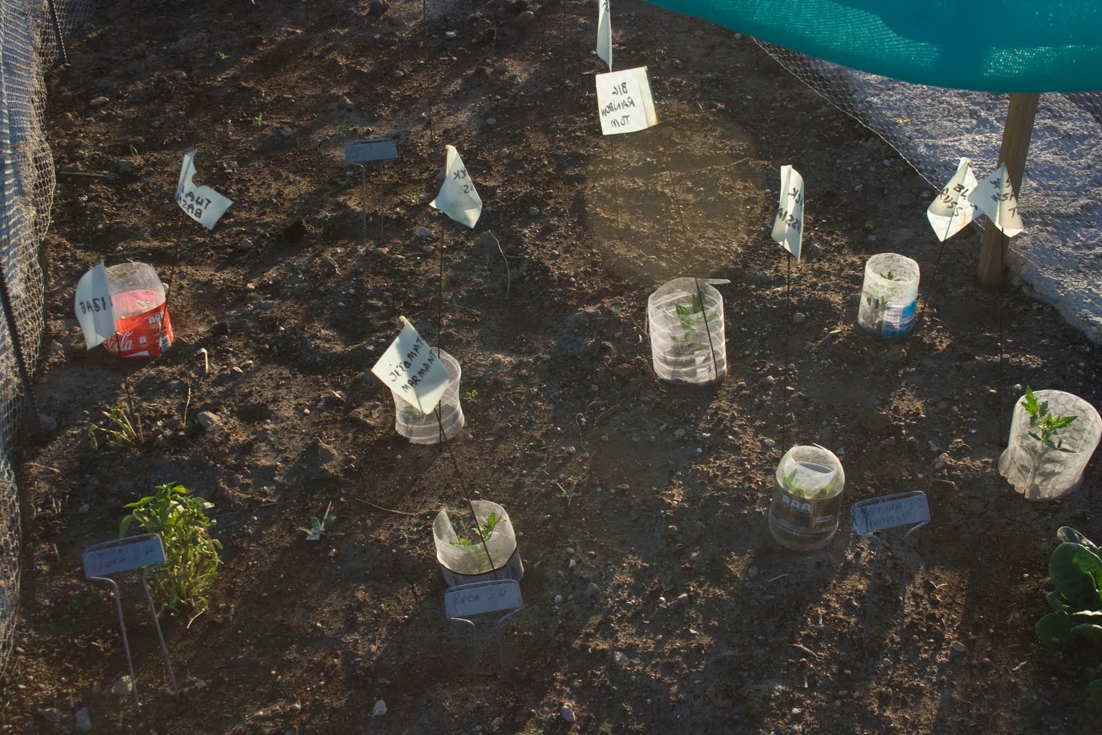 Despite the insistence of American garden books and catalogs on “full sun,” I’ve had to install protective netting. The intensity of the sun in San Miguel is amplified tenfold by the altitude (about 1.2 miles above sea level), the unremitting, rainless days and finally a nearly constant, desiccating wind. When I put out the seedlings I protected them with pieces of plastic soda bottles that seem to have helped.