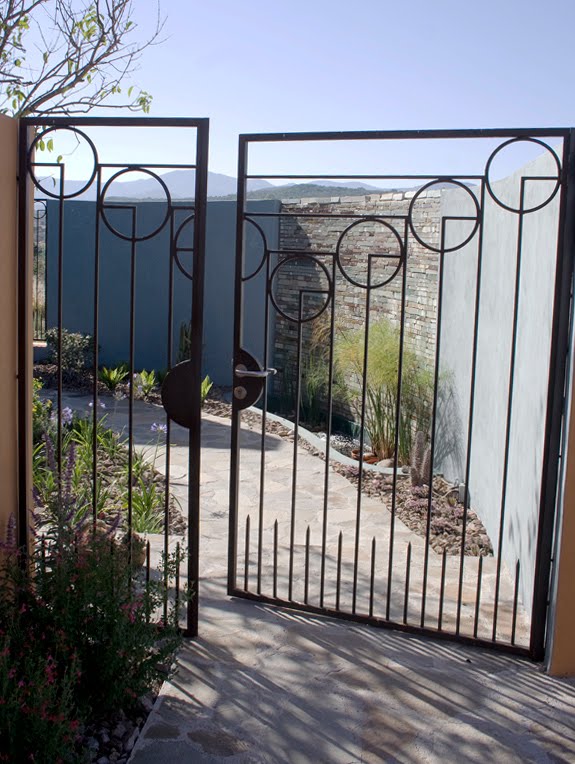 Wow! I love that front gate. Did you do the design? It has a Frank Lloyd Wright look. Sort of like the windows. Maybe we need more pictures of the house as it gets settled in.