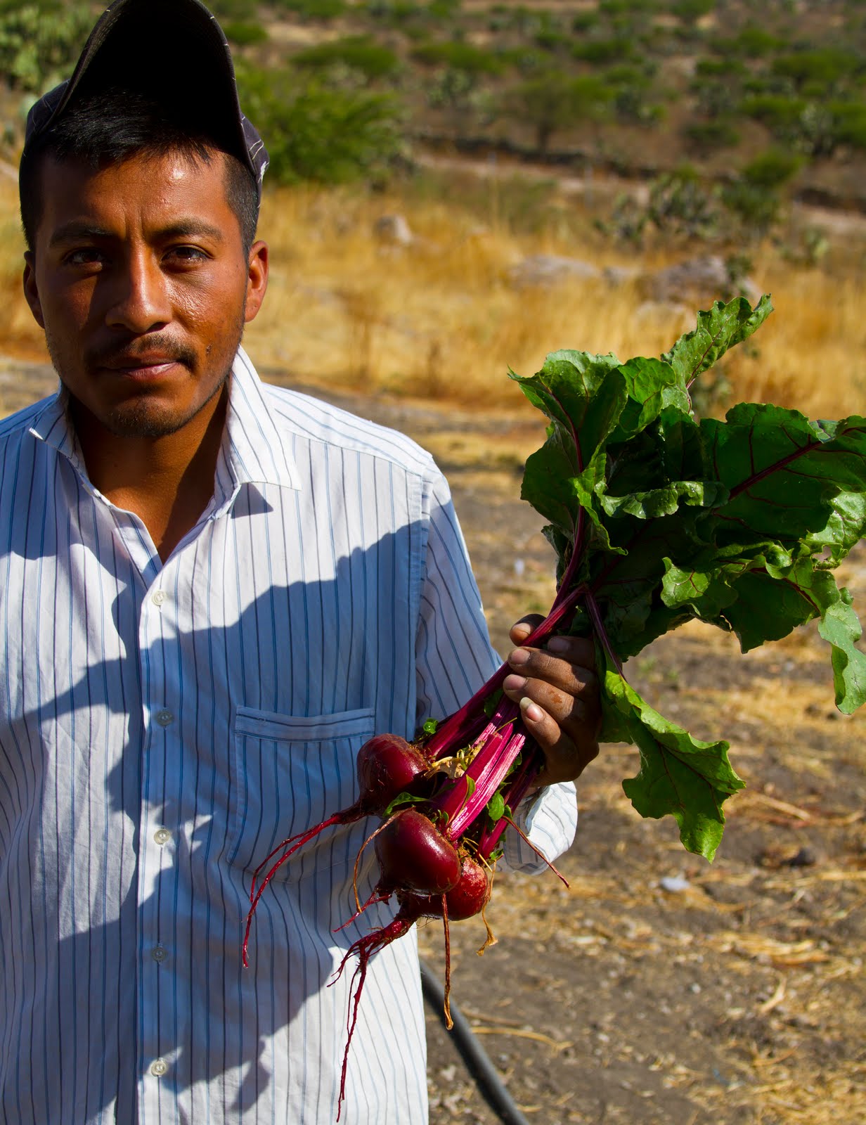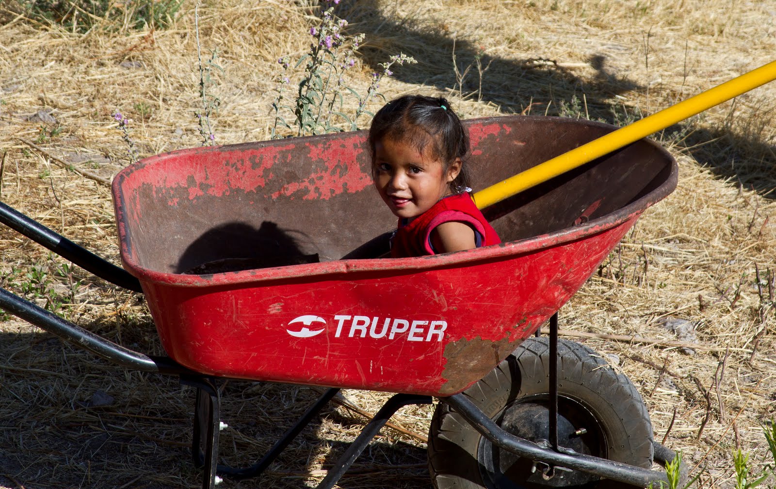 His patience and affection toward other beings–his two-year-old daughter Alondra, animals and plants–is a wonder to watch. He brings the little girl to work occasionally and carries her across the ranch in the wheelbarrow along with a pile of dirt, with much giggling by the two, or lets her grab the garden hose though she gets more water on herself than the plants.