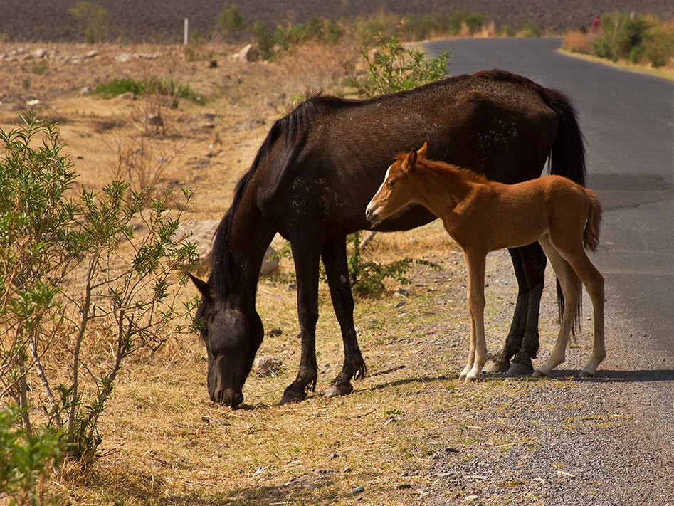 Colts look neither sad like donkeys nor skinny like calves, and instead hop around unsteadily but happily on their stilt-like legs.  Maybe horses are more valued by the owners who feed and treat them better. Maybe that’s just the way they look.