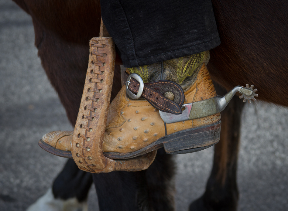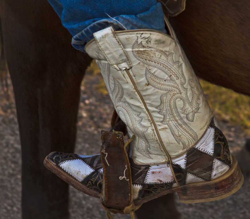 | This photo and the four following: Boots styled at the procession, some brand-new, others well worn. |