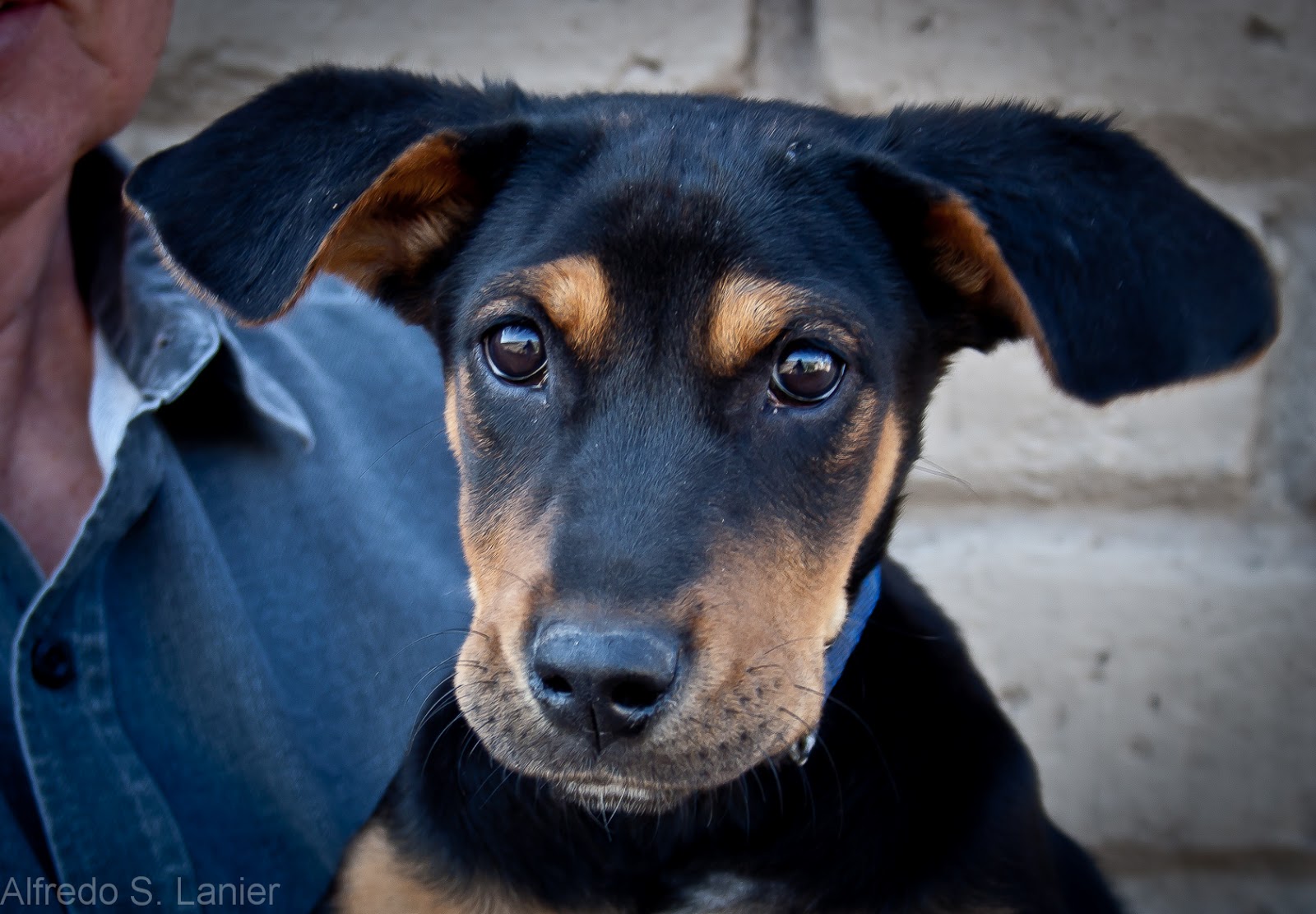 While a ranch hand shoveled the manure onto our pickup, Félix, Stew and I spotted this skeletal Doberman-ish puppy that someone had found abandoned on the streets of San Miguel and brought to the ranch the day before. Her short and inauspicious existence hadn’t soured her outlook on life or friendliness toward animals and people alike.