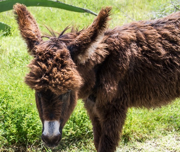 What makes baby donkeys so attractive, if that’s the correct description, is hard to describe. The ears are way too big; the bodies come covered with a rough, long, curly fur that hides their eyes; the hooves don’t seem big enough to support them so they seem to tip-toe unsteadily. Not a beautiful sight, but one you instinctively want to reach out to and pat on the head, a compliment this girl donkey readily accepts.