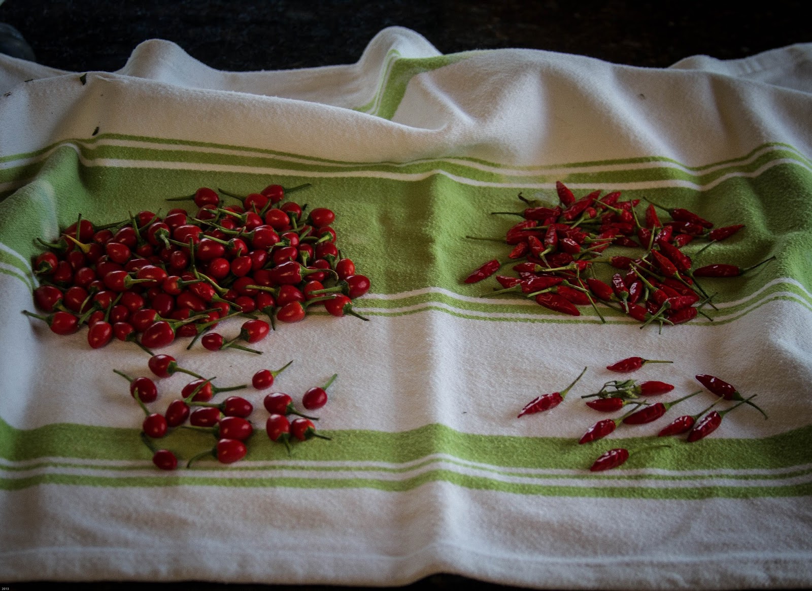 Stew has not given up on chiles. Two nights ago he cooked pasta with some of our pequín chiles which was delicious. He says the most dangerous bits are the seeds, and that the skin has to be minced very finely to avoid an accidental chunk of chile, lurking like a land mine, in a spoonful of pasta.