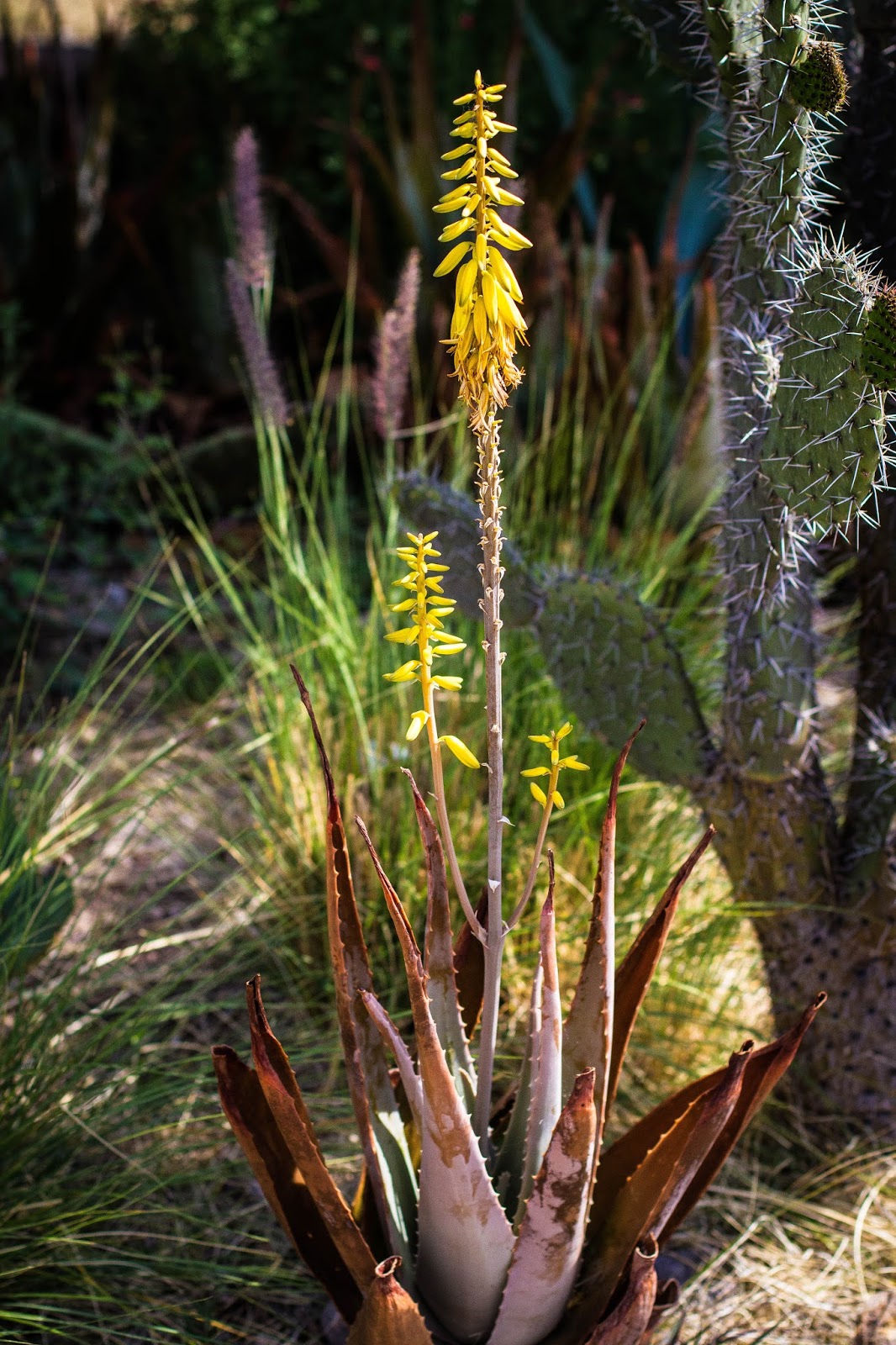 Then comes April and the same succulents now beg to be admired with their bright green growth replacing their dour, grayish winter plumage and most amazingly, flowers in all colors from shrill orange to more discreet shades of rose or lavender. Some are delicate and orchid-like, others tiny and barely visible, while a few grow in giant stalks ten or fifteen feet high that serve as natural alarm clocks to bees, signaling them to get going and make some honey.