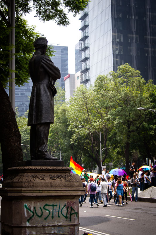 For a huge city, Mexico City’s Gay Pride Parade is relatively small. Newspapers the day after estimated attendance at between eighty and two-hundred thousand, compared to Chicago’s nearly one million. The event had a homey, block-party feel to it.