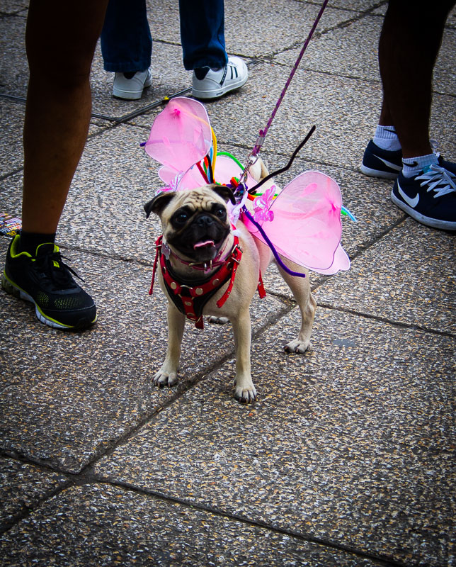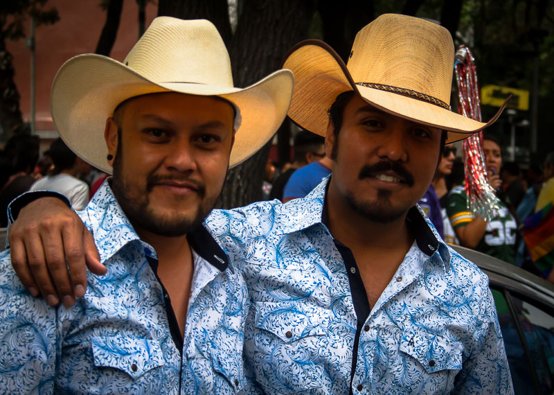 Leading the parade was a tangled, four-hundred-meter-long rainbow flag—about thirteen-hundred feet—that took forty-five minutes or so to unfurl, followed by a huge balloon in the shape of a condom. A little farther behind was a posse of vaqueros wearing the intricate, formal regalia Mexican cowboys, and who rode horses that seemed increasingly impatient with the going around in circles waiting for the crowd to move.