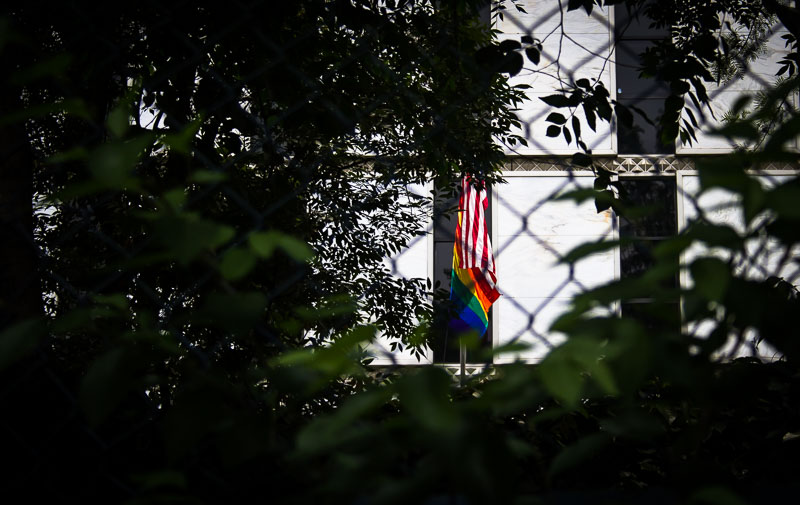 Thanks Barack Obama: A rainbow flag flew along with the Stars and