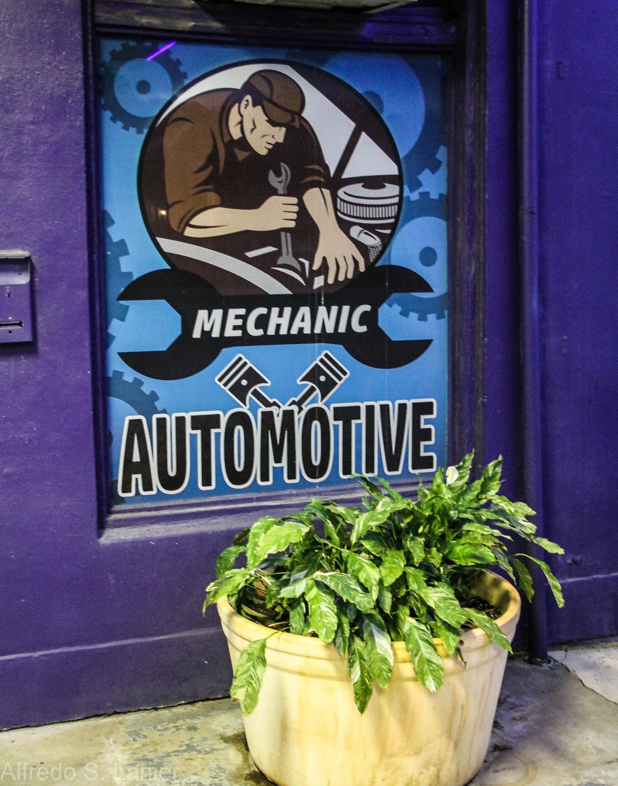 (17) A bit of purple humor at the purple gas station.