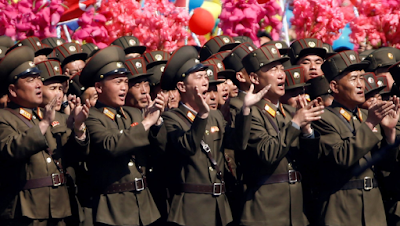 North Korea’s Kim Jong-Un is seldom photographed without a retinue of army hacks wearing flying- saucer-size hats and clapping and smiling, zombie-like, to celebrate the launching of the latest rocket, whether it went straight up or into a pack of hapless cows at a nearby pasture.