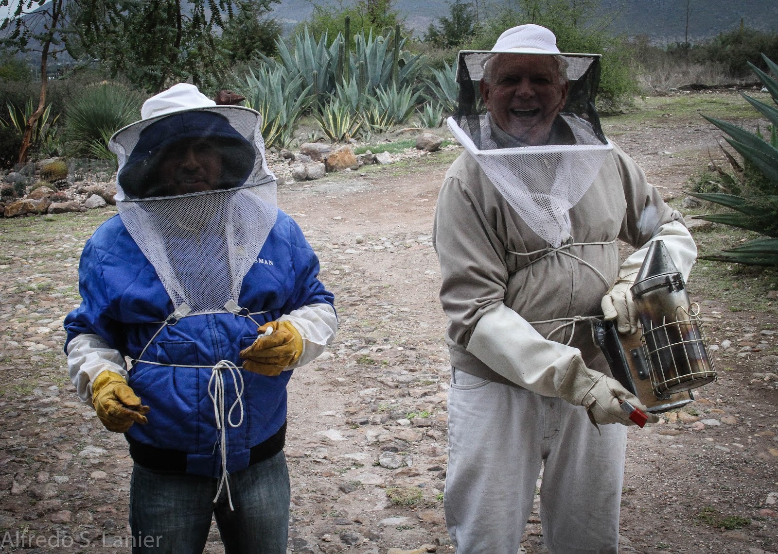 The two queens to be replaced had been at their posts for about two years and Felix and Stew thought it would revitalize the two hives and spur more honey production if we got replacements, which they did from a supplier in Morelia, for $620 pesos or approximately $30 dollars, including some very fancy overnight shipping.
