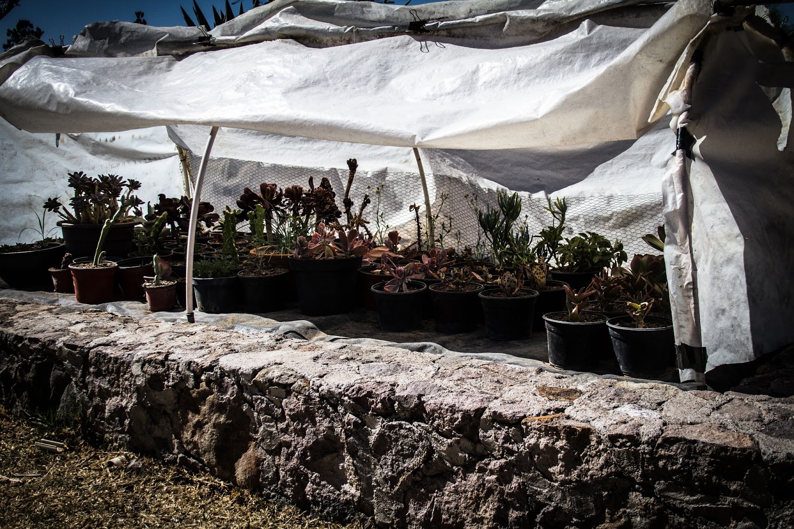 Better off using shallower containers with a layer of gravel at the bottom. For soil we used a mixture of black soil; tezontle (a porous red volcanic rock in lieu of vermiculite or gravel to keep the soil light and well draining); and some compost. This mixture isn’t much look at but succulents like their growing medium light and airy, almost desert-like. Muddy soil or too much water are killers.