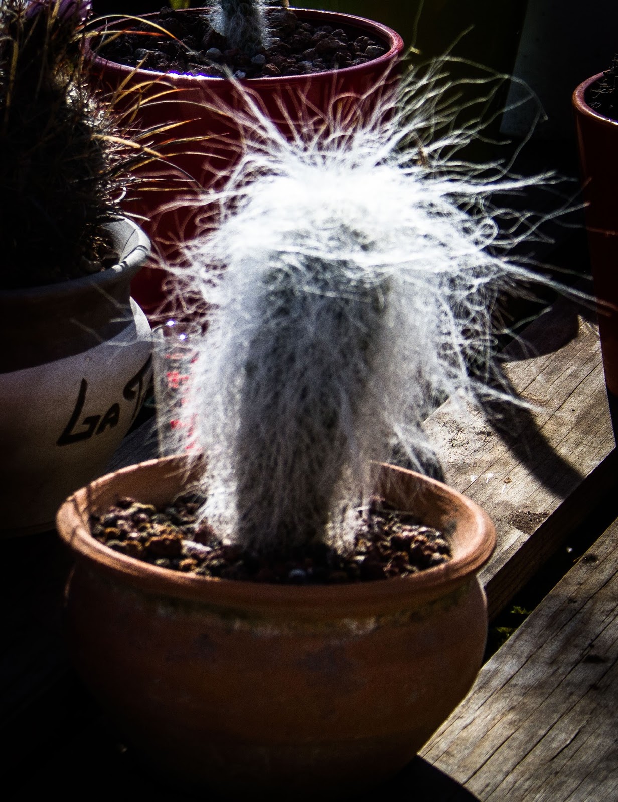 The weirdest, or most interesting, would have to be a cephalocereus senilis, or “old man cactus” with a wild mop of white hairs reminiscent of Bernie Sanders in the middle of a stump speech.