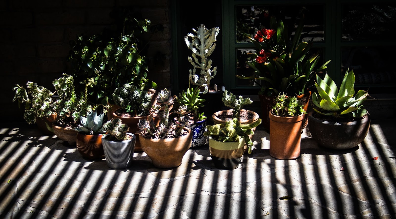 The result—no surprise— was not a finely tuned choir of succulents but a shrill mob of all shapes and colors. Not even the pots matched, some being talavera knock-offs, others sleek modern designs and many, many clay pots.