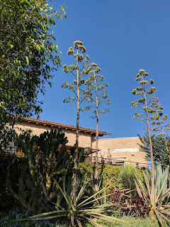 Bees were certainly impressed with the showy agave stalks, called quiotes in the local indigenous language, and for several weeks buzzed around the surprise bounty of flowers. The bees systematically worked their way from the bottom up as more flowers appeared.