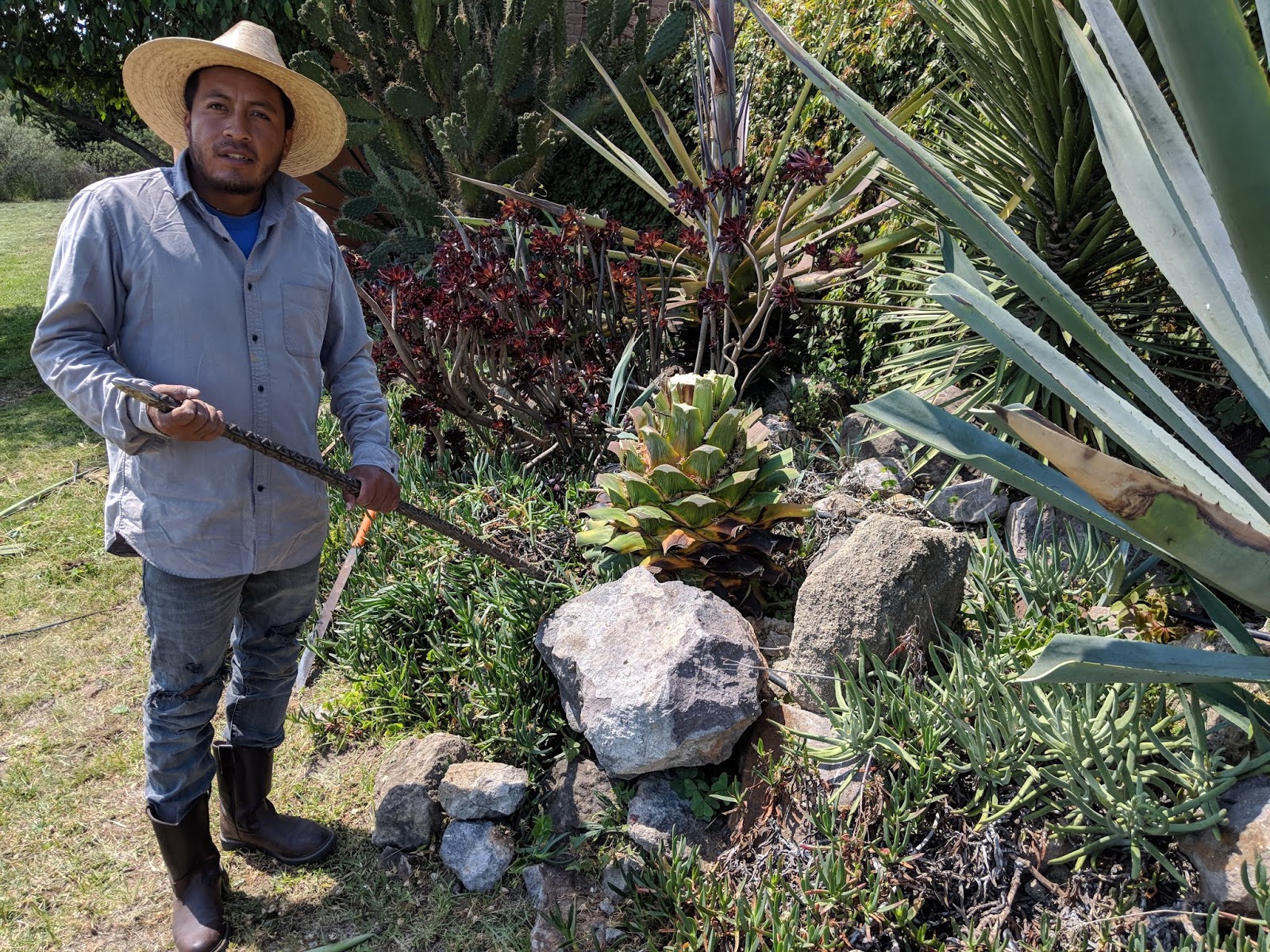 In fact, Félix and Stew have checked our three beehives and predict a bumper crop of honey in the fall, certainly good news compared to the meager production of the past two years. I haven’t asked the bees, but I have to believe the agave flower extravaganza stimulated their production of honey.