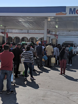Instead, if there’s anything Mexicans have mastered is waiting in line for everything, at the phone or cable company, government offices, banks and now gas stations. At one BP station on the way out of town, there were even a couple of police vehicles patiently waiting in line, along with everyone else.