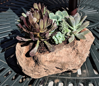 On Monday, we went to the annual Candelaria flower show. Maybe because it was a Monday, the show didn’t seem as lively or crowded as years past but good enough to pick up a half-dozen succulents I didn’t have, and for Stew to buy his umpteenth pot of cilantro, parsley and mint, herbs he probably is never to going to use but insists are always good to have at hand.