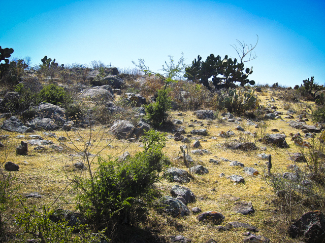 I blame our poor soil on long-term erosion aggravated by overgrazing. By the end of the dry season, when parts of the landscape look as if they were painted with a blowtorch, goats will eat practically anything, even thorny huizaches. Not long ago, we left two pots of agaves outside the gate and cows ate most of the fronds.