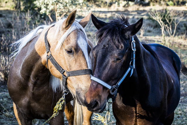 | Dorado, left, sharing a moment with Stew’s no-name horse. |