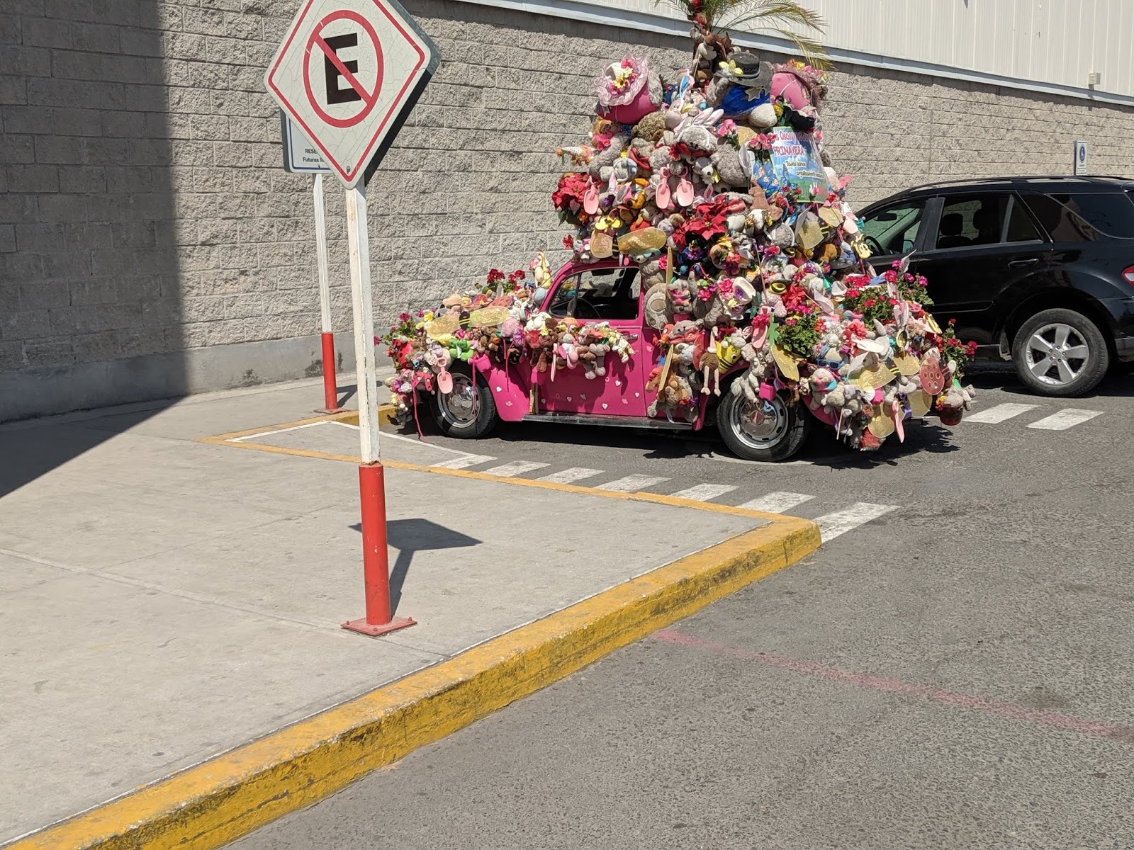 I‘ve seen this VW Bug around town before, but never talked with the owner who, I’ve been told, is Canadian. This time his creation was on the parking lot of the Mega supermarket.