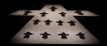 The stark main set was a white cross painted on the floor of the Met’s enormous stage and metal prison grates that came and went according to the plot.