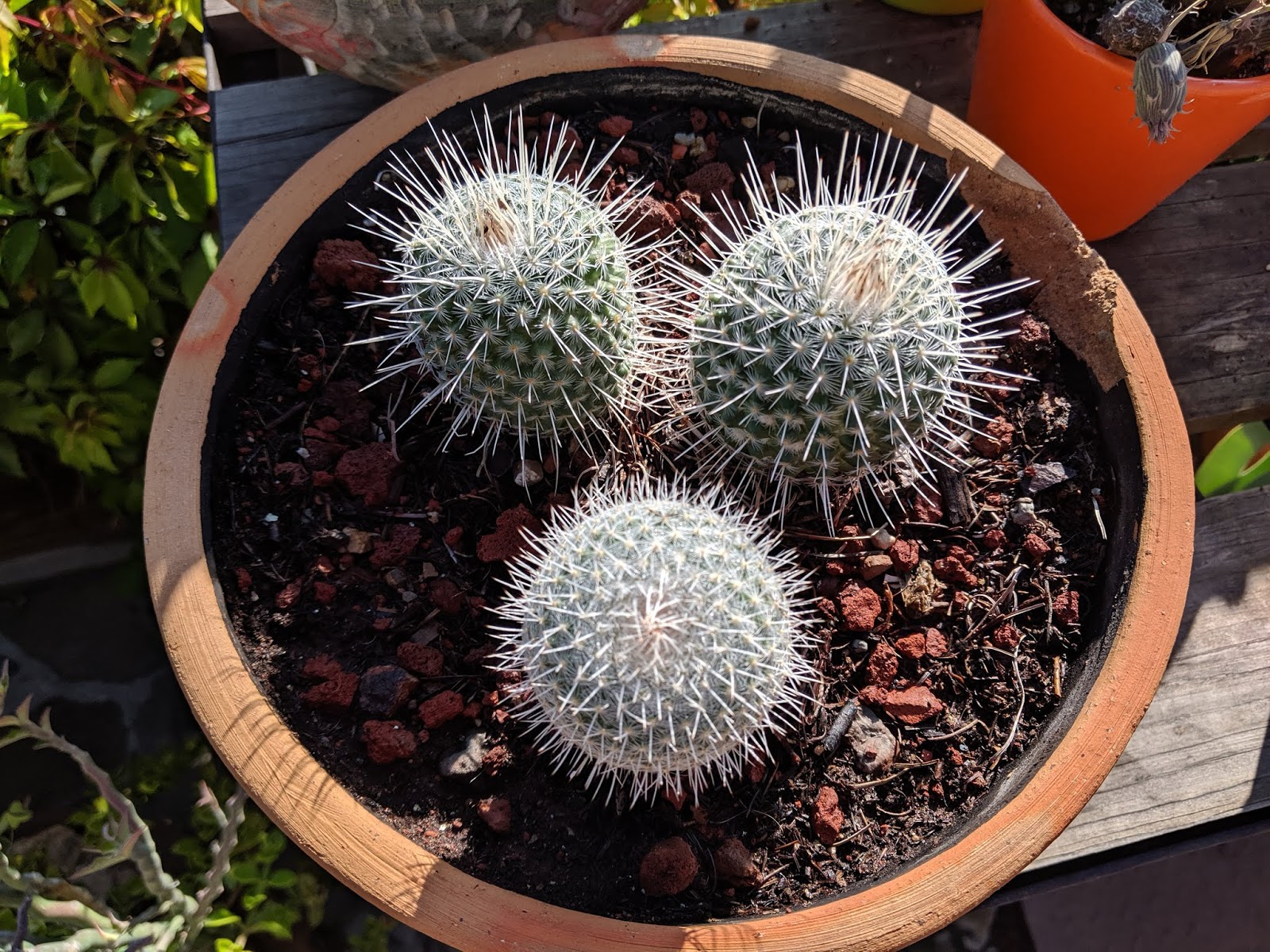 | I thought these were three peas in a pod, but the bottom one turned out to be slightly different. The red stuff on the soil is tezontle. |
