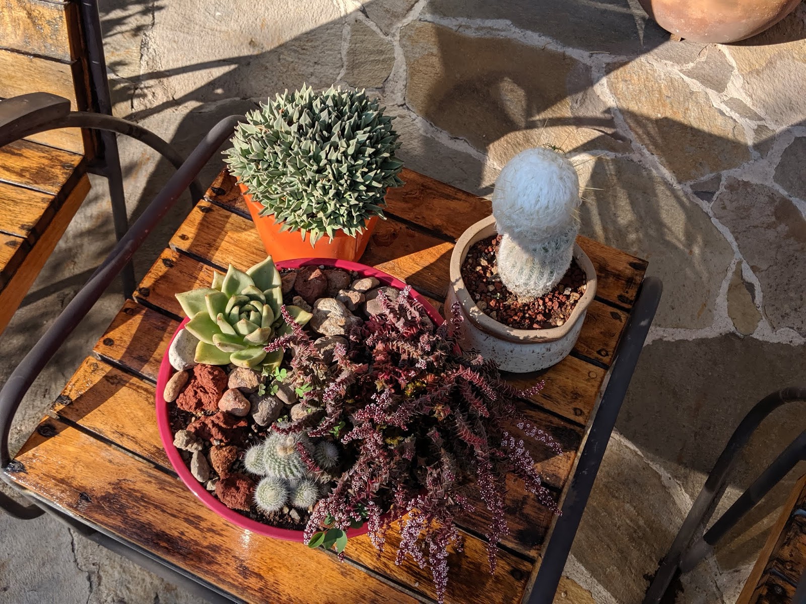 | This table is the sunniest spot, getting full afternoon exposure. |