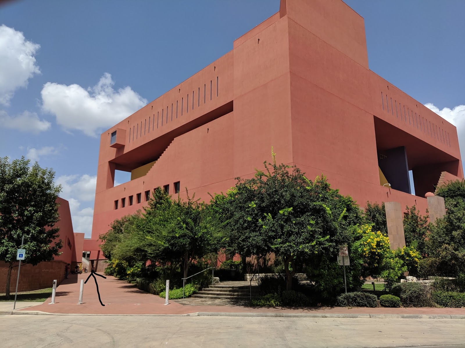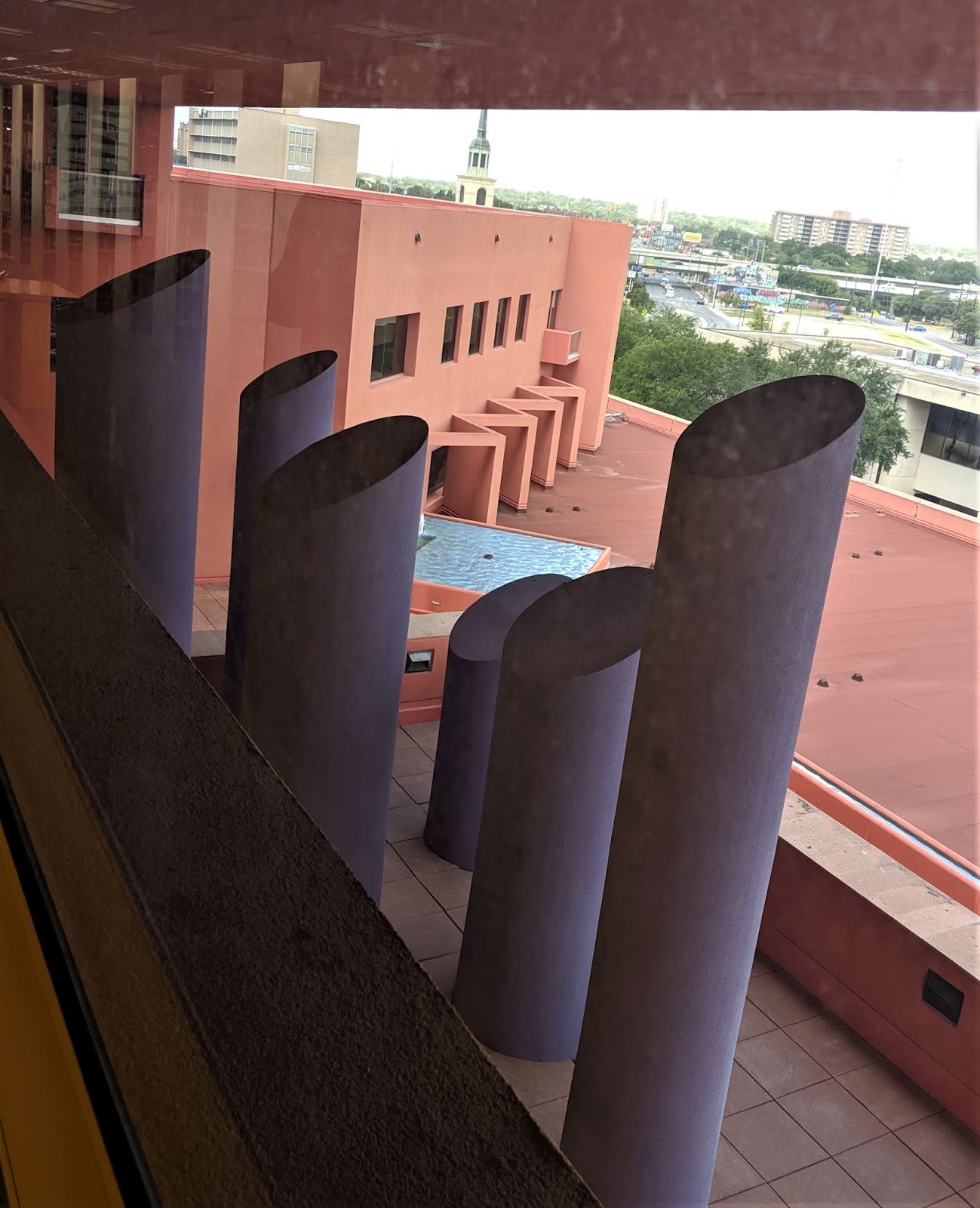 This striking building, built in 1995, is visible from one of the expressways that slice and dice San Antonio’s downtown and it first strikes you as a not particularly welcoming concrete box.