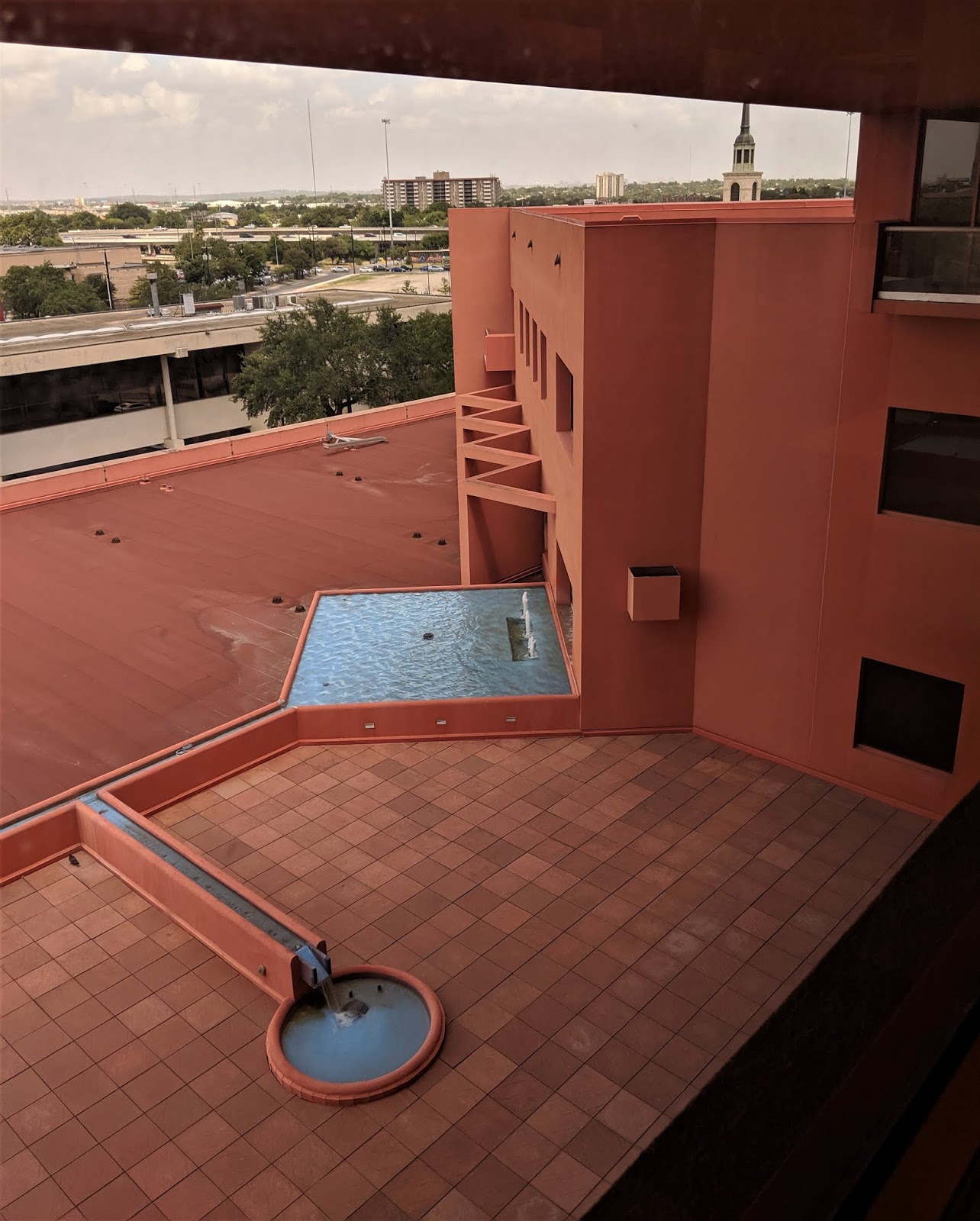 But despite being squat, the library stands out among the traditional buildings in San Antonio’s center which includes some really elegant Art Deco confections, I surmise from the 1920s and 1930s, and many more contemporary, mostly forgettable, office buildings and hotels.