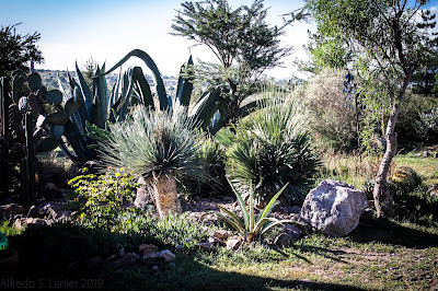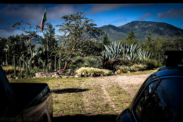 When the garage door slowly clanged open yesterday morning, it gradually revealed a stunning slice of our garden. At this early hour, about eight, the air was bracing, almost cold, and the mountains rising over the horizon still had a hint of the bluish morning fog. On this, the weekend when Mexicans are celebrating the country’s independence, our faded Mexican flag barely fluttered.