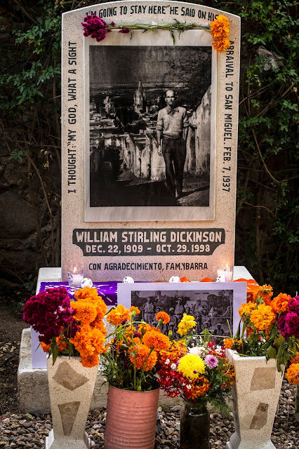 Stew and I began visiting the expat section several years ago, when we used to attend the Community Church of San Miguel, an English-speaking congregation, which organizes visits to this part of the cemetery on the Day of the Dead, ostensibly to clean up and decorate the gravesites, though in reality the area is so fastidiously maintained there’s really no need.