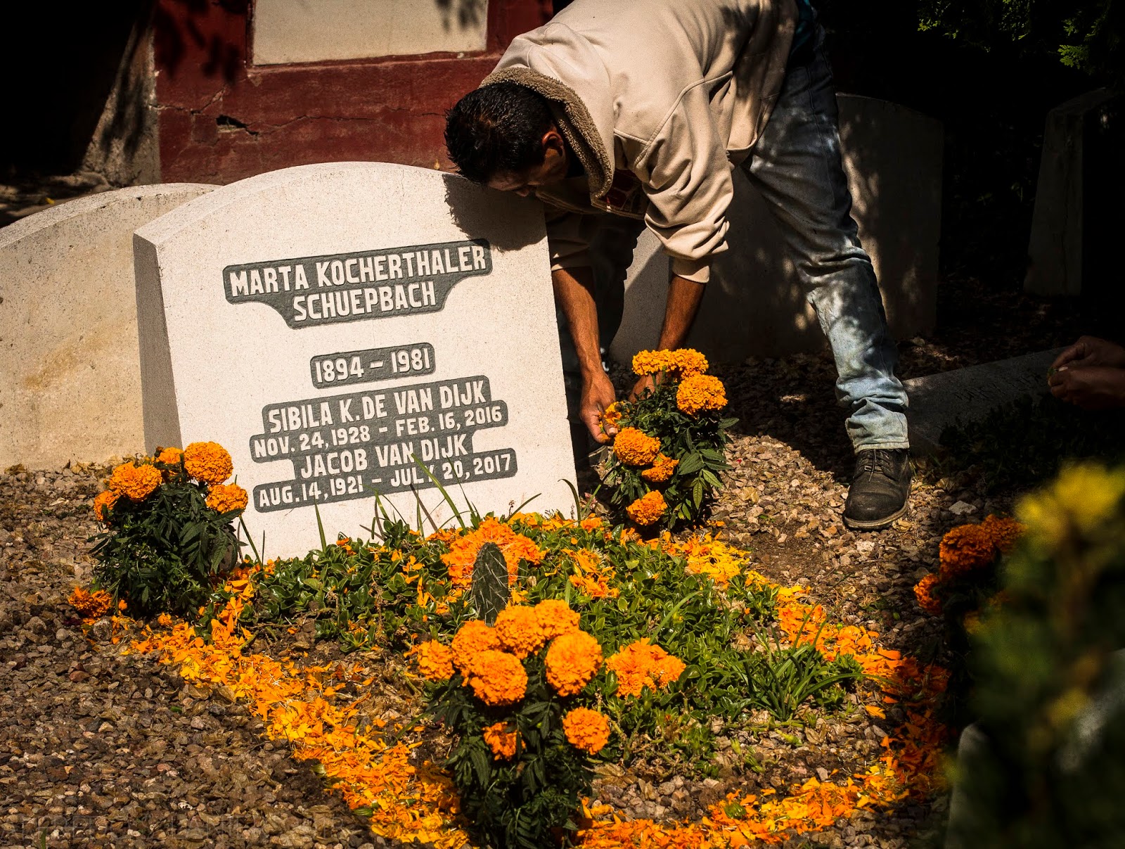 To reach the expat section, one has to traverse almost the entire length of the entire cemetery, which on Day of the Dead is a cacophonous frenzy of activity, with relatives painting and decorating gravesites.