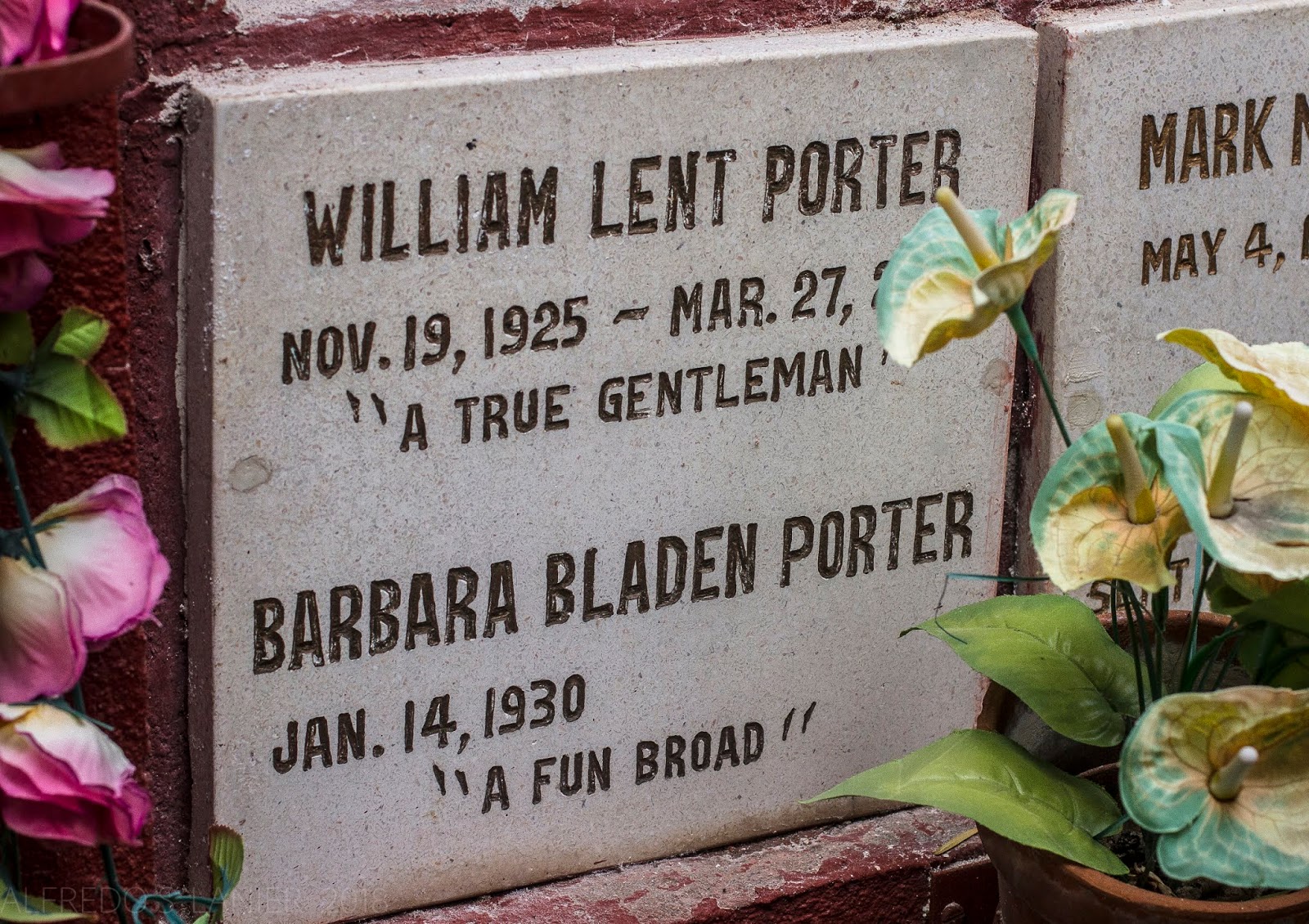 For us it’s a more traditional gesture of remembrance of friends who died the year before. This year we visited Norm Meyer and his son-in-law “Louie” Armstrong, whose ashes rest in simple side-by-side crypts.