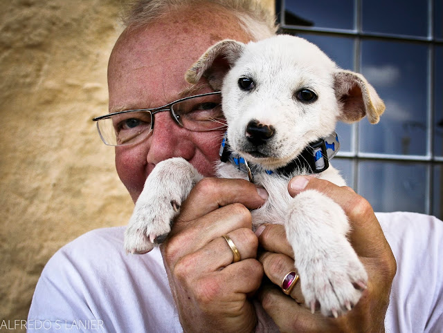 While volunteering at the reception desk of a local animal shelter, shortly after arriving in San Miguel, a woman came in with a battered birdcage holding a pitiful white puppy inside, with a bloated pink belly and soulful eyes. She had found a cardboard box containing three or four puppies, a few weeks old, by the side of the road to Los Rodríguez, a nasty piece of residential real estate near San Miguel. All the puppies were dead except for the one customer in the birdcage.