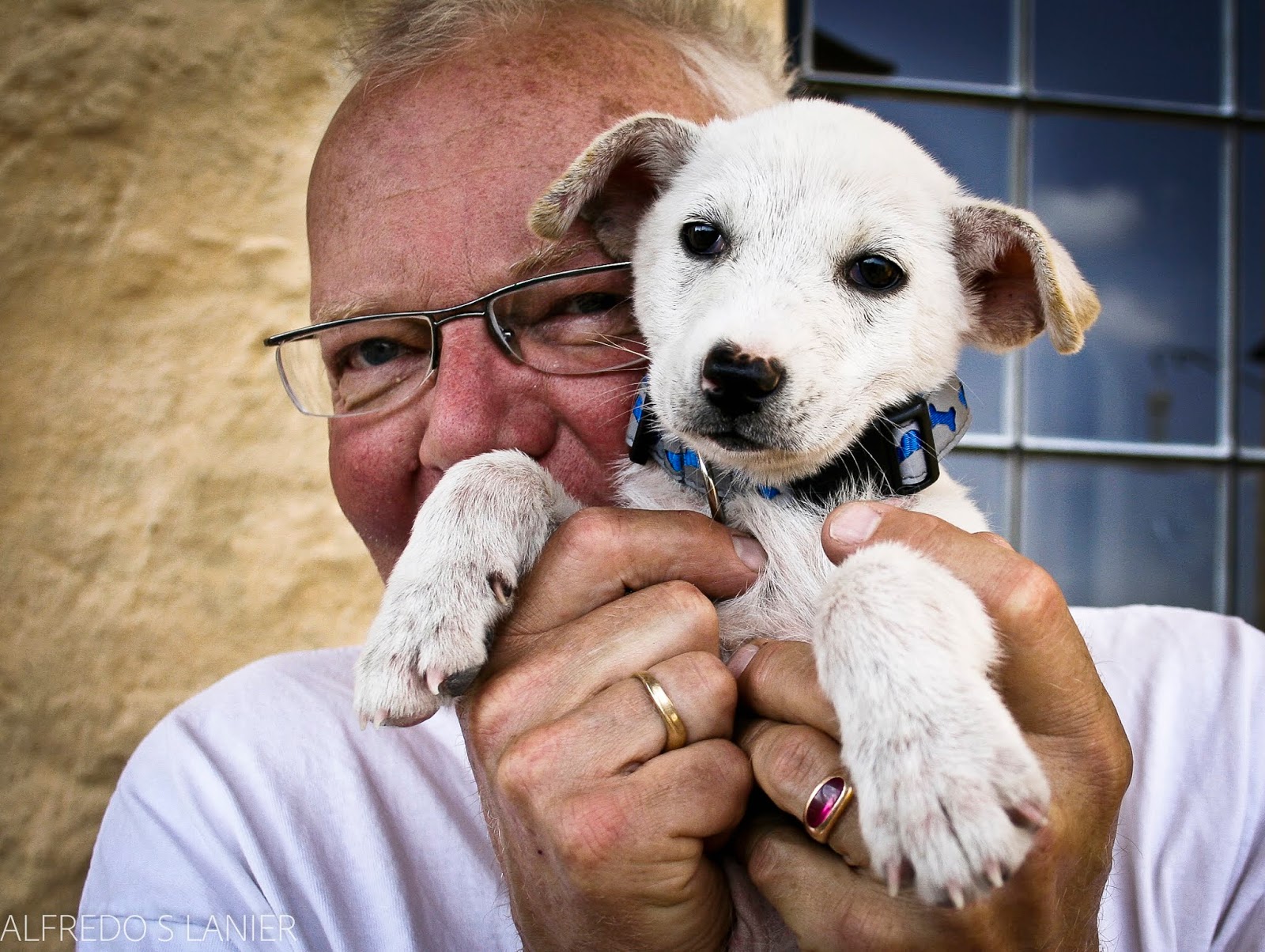While volunteering at the reception desk of a local animal shelter, shortly after arriving in San Miguel, a woman came in with a battered birdcage holding a pitiful white puppy inside, with a bloated pink belly and soulful eyes. She had found a cardboard box containing three or four puppies, a few weeks old, by the side of the road to Los Rodríguez, a nasty piece of residential real estate near San Miguel. All the puppies were dead except for the one customer in the birdcage.