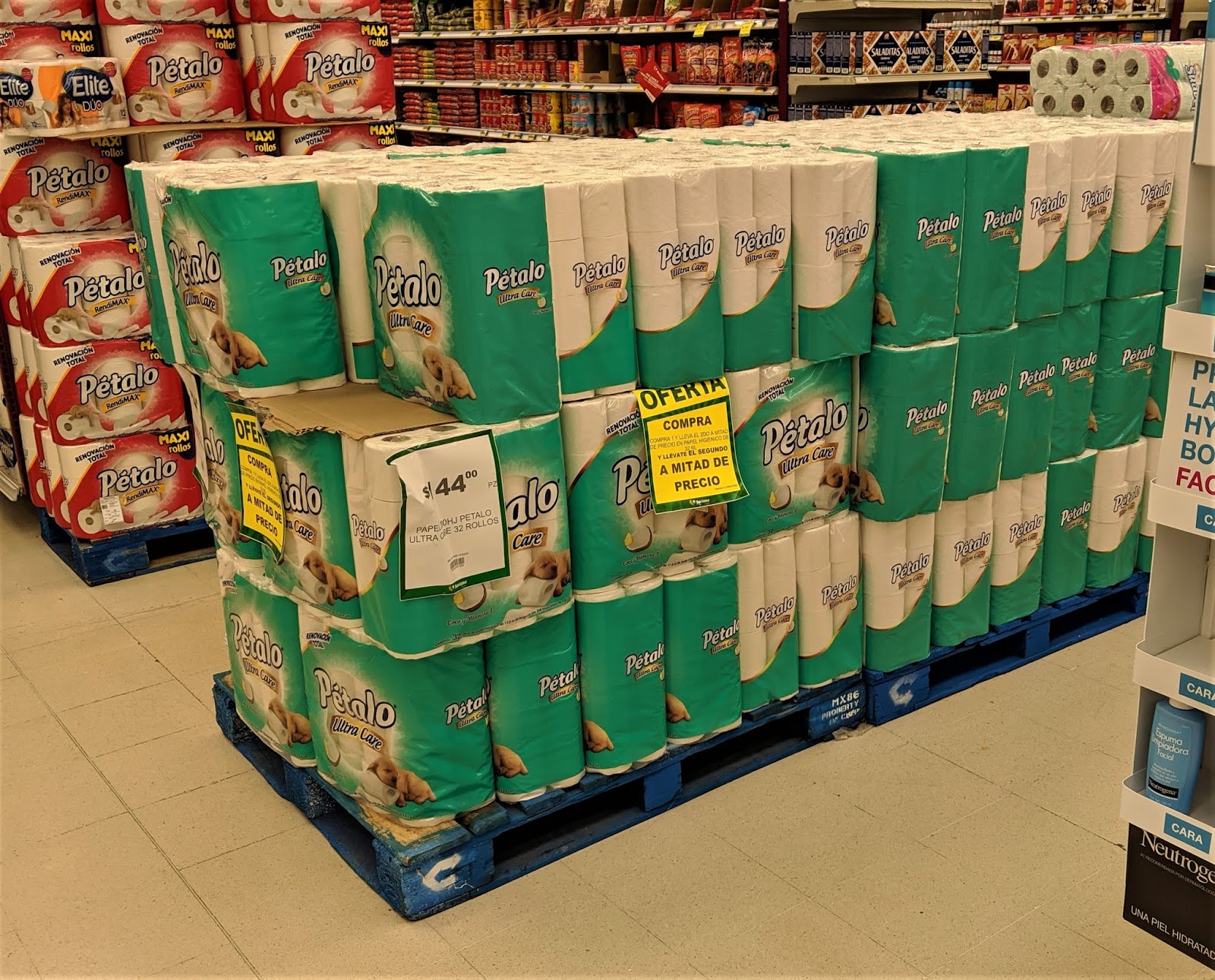 | Impromptu displays of toilet paper at Soriana supermarket. |