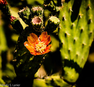 Also, the prickly pear cacti, of we have several varieties, are not waiting for the rain and spring to arrive, and have been flowering for a few weeks now.