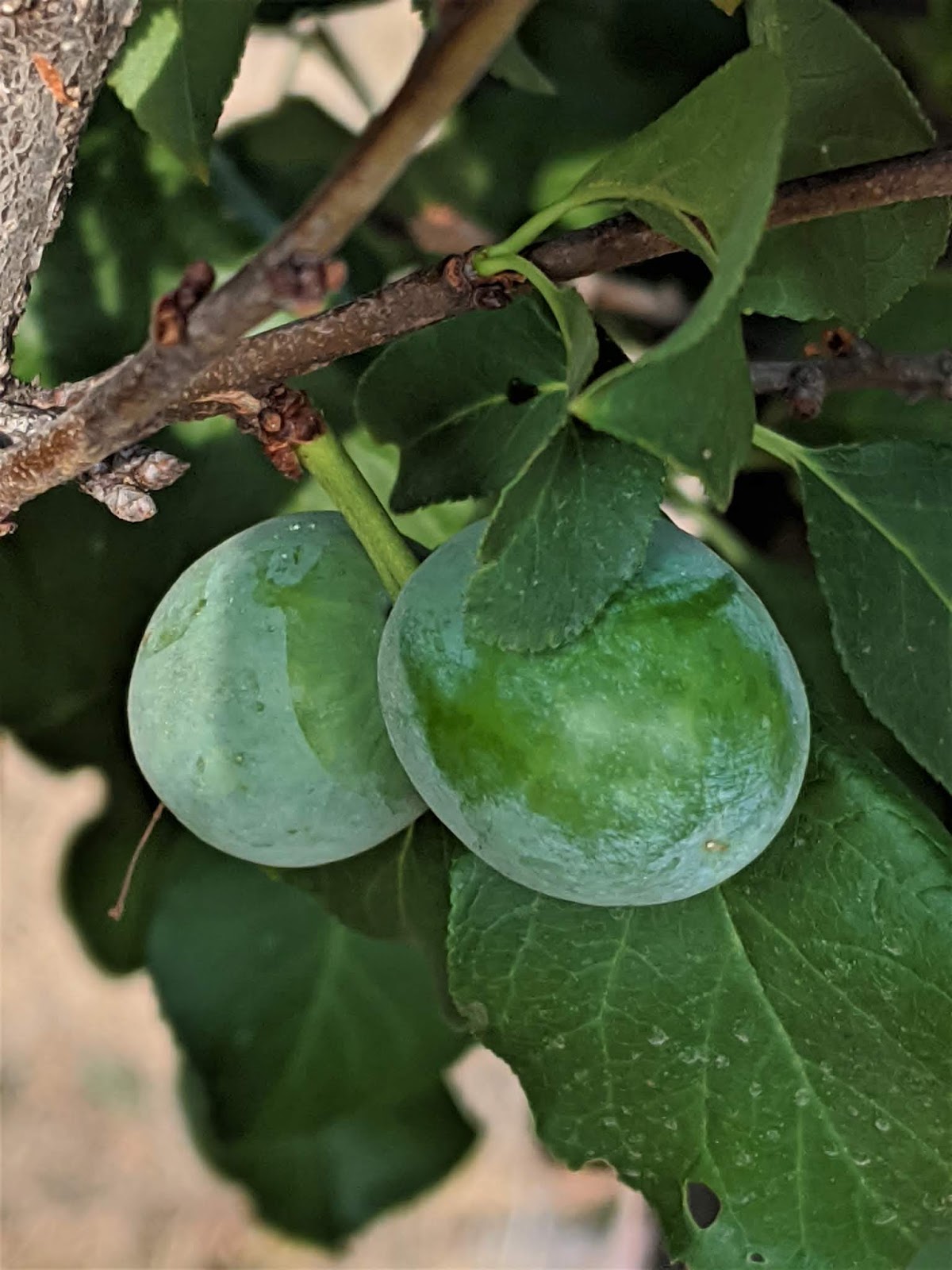 However, eagle-eyed Felix picked up a couple of auspicious signs around the yard. Two 10-year-old cherry trees which had never even shown symptoms of fruiting, suddenly have several bluish fruits each.