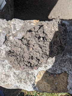 | Holes in the clumps of dirt we dug up show we used to have plenty of worms. |