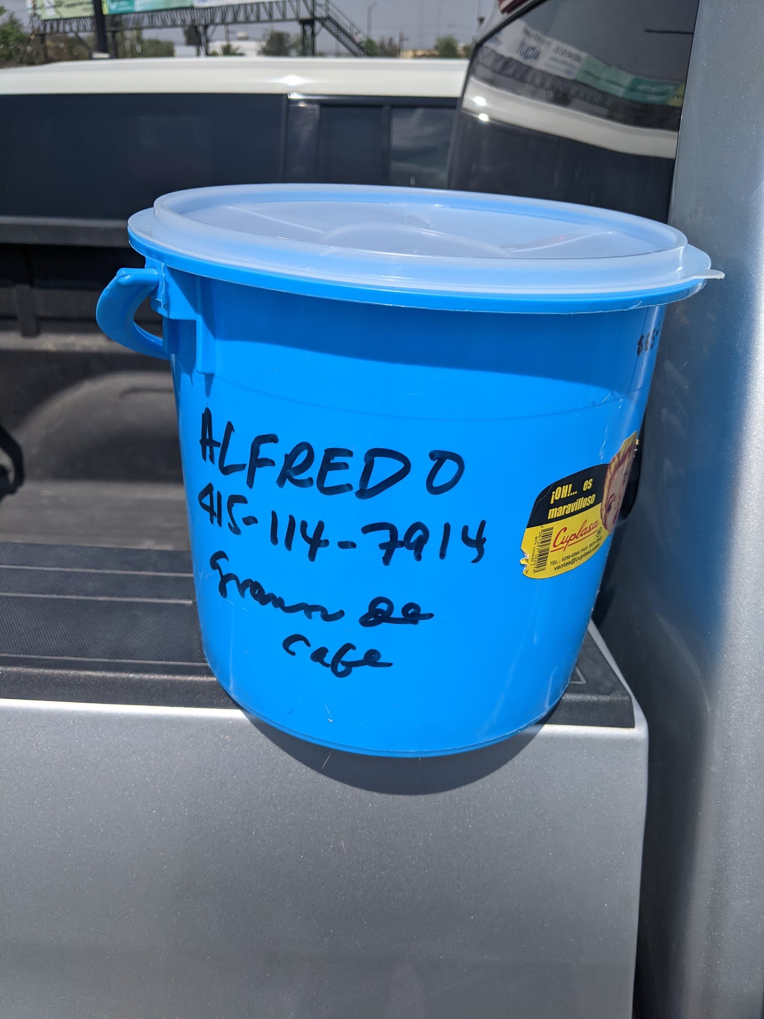| A bucket of grounds to go |