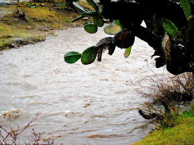 | The dry creek near our ranch, several years ago: When it finally rains, it pours. |