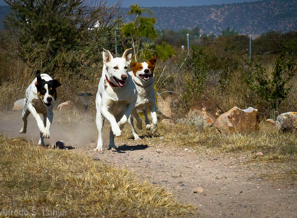 Whenever she went on hunting expeditions around the ranch, for snakes, rabbits, spiders, rats or other moving objects, the other four dogs followed, waiting for cues. If we went for walks, she would lead us like a guide.