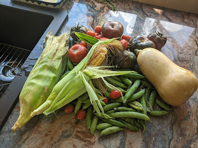 The consolation, not inconsiderable, is that all the other vegetables have grown rambunctiously, except for the cantaloupes which didn’t even make an appearance.