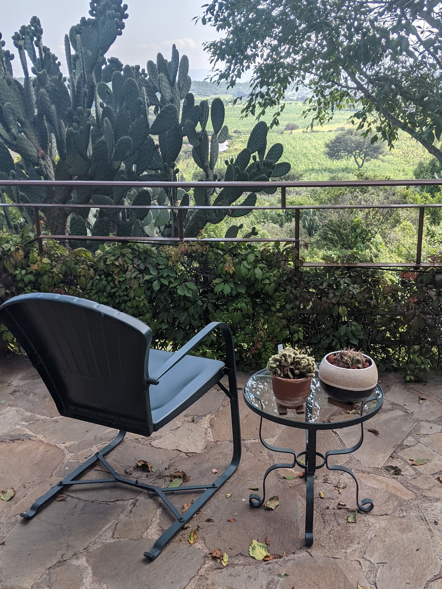 With the remodeling of our terrace recently finished, I’ve recreated my minimalist meditation nook, which consists of an old patio chair we brought from Chicago and a small companion table made here. The only other prop is a Kindle tablet with a pair of wireless earbuds.