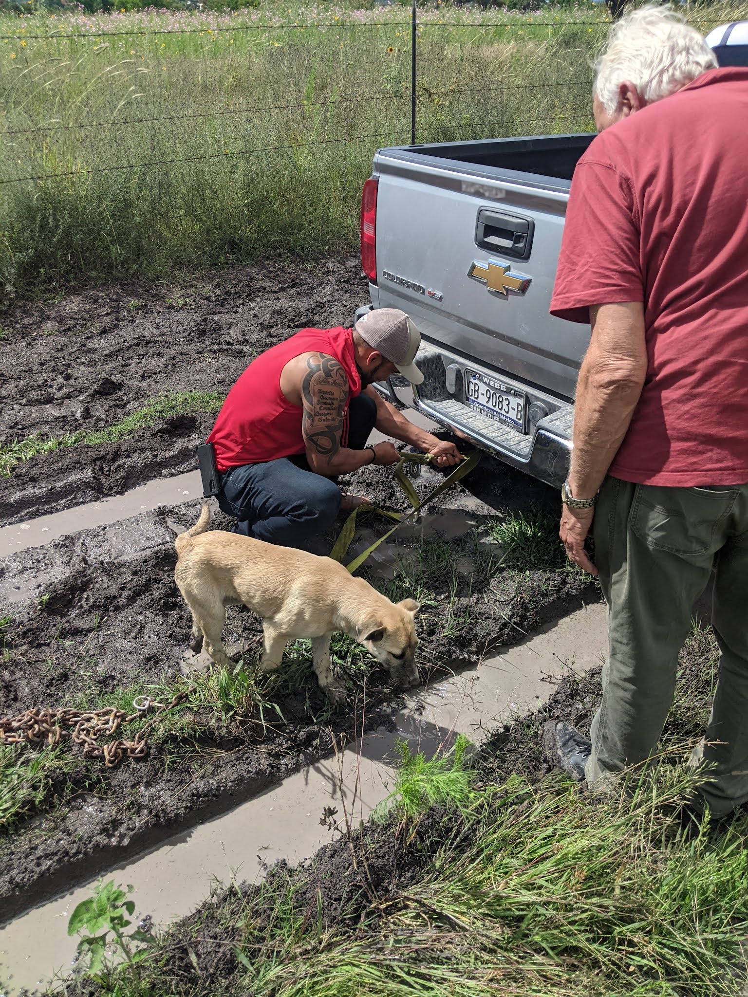 Confident that our four-wheel drive Chevy Colorado pickup would get us through anything, Stew spun and fish-tailed down a road that rapidly deteriorated into a quagmire: The truck became firmly stuck in mud up to its side stirrups. So I had to walk the final 100 feet to Gabriel’s house and ask if he’d pull us out with his Chevy Tahoe truck.